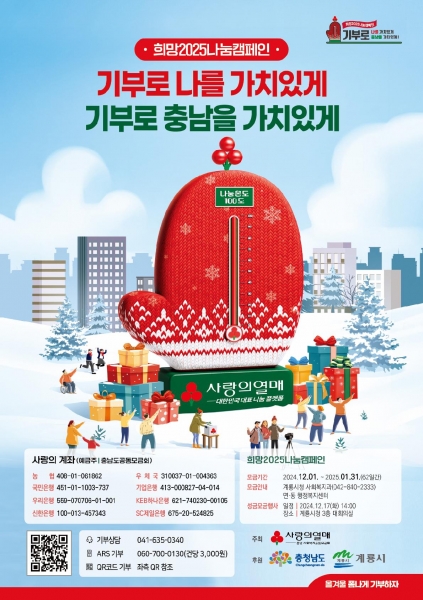 한편 시는 지난해 시민들의 자발적인 기부참여를 이끌어내며 나눔문화 확산에 앞장서 ‘희망 2024 나눔 캠페인’ 분야에서 충남도 최우수 기관으로 선정된 바 있다.