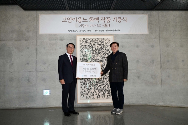 한편 이용록 홍성군수는 “이응노 화백의 뿌리인 홍성군에 아무런 조건 없이 귀중한 작품을 기증해주신 가나아트 이호재 회장께 깊은 감사를 드린다”며“고암 이응노 화백의 작품을 널리 알리고 깊이 있게 연구할 수 있도록 다양한 전시와 연구 활동을 적극적으로 지원하겠다”고 밝혔다.
