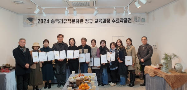 [Ytv영상스토리] 부여군 궁남지 연꽃갤러리에서 2024년 송국리유적문화관 정규 교육과정을 수료한 수료자 11명의 작품이 12월 10일까지 전시된다.