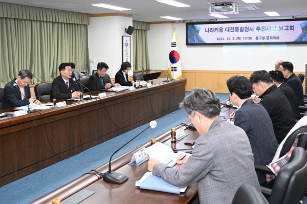 [Ytv영상스토리] 대전 중구는 지난 5일 구청 중회의실에서 舊 충남경찰청 부지에 들어서게 될 '나라키움 대전통합청사' 건립에 대한 추진사항 보고회를 열었다고 밝혔다.