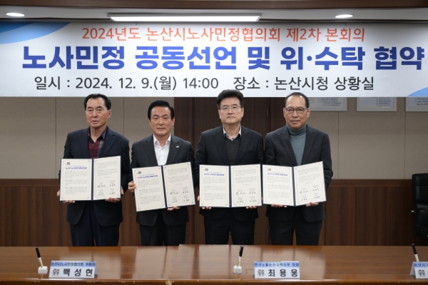 이어 한국노총 논산지역지부와 사무국 운영 위수탁 협약을 체결했으며 2025년부터 3년 간 노사민정협의회의 사업 운영과 관리 업무를 위탁한다.