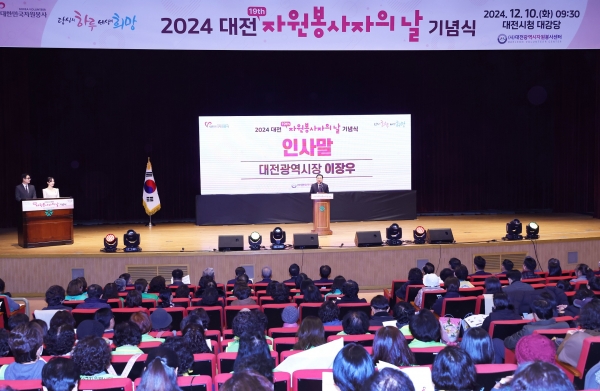 이날 행사에는 이장우 대전시장을 비롯해 조원휘 대전시의회 의장, 박희조 동구청장, 김제선 중구청장, 서철모 서구청장, 정용래 유성구청장, 이성규 대덕구 부구청장, 대전시자원봉사센터 구자선 이사장과 김현호 센터장, 대전시자원봉사연합회 김영태 회장, 5개구 자원봉사센터장 및 자원봉사협의회장 등이 참석해 올 한 해 헌신적으로 활동한 자원봉사자들의 노고에 존경과 감사를 표했다.