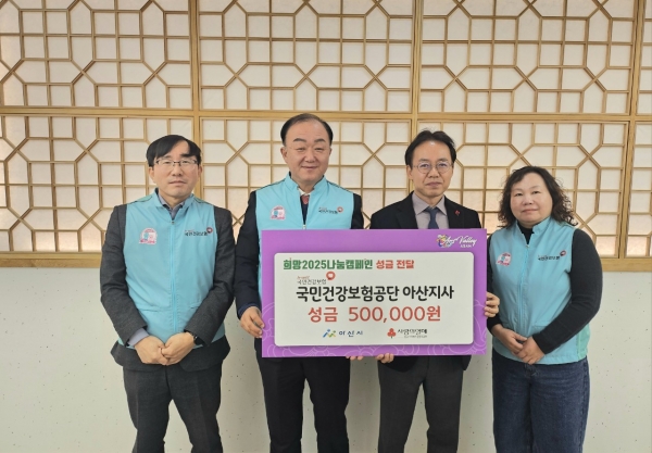 [Ytv영상스토리] 국민건강보험공단 아산지사가 지난 16일 아산시에 ‘희망2025나눔캠페인’ 성금 50만원을 전달했다.