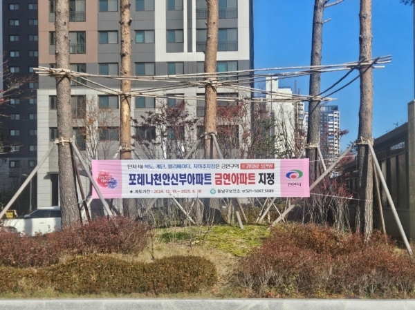 이번에 금연아파트로 지정된 포레나천안신부 아파트에는 현판과 현수막, 금연구역 안내표지가 지원된다.