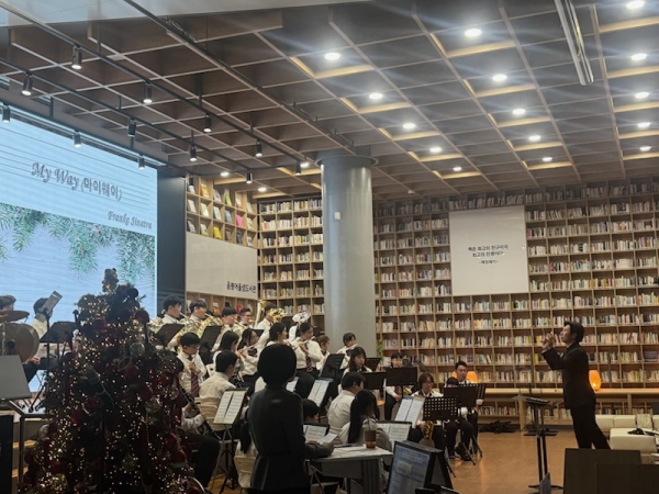 특히 음봉어울샘도서관 1층 다목적홀에서 금요일 저녁에 이뤄진 관악 오케스트라는 북카페의 크리스마스트리와 적절한 무대조명이 함께해 더욱 완성도가 높은 무대였다.