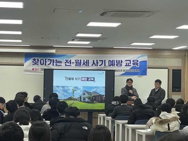 [Ytv영상스토리] 당진시는 수능이 끝난 고등학교 3학년 학생들을 대상으로 18일~19일 이틀간 송악고등학교, 호서고등학교에서 전 월세 사기 예방 교육을 실시했다.