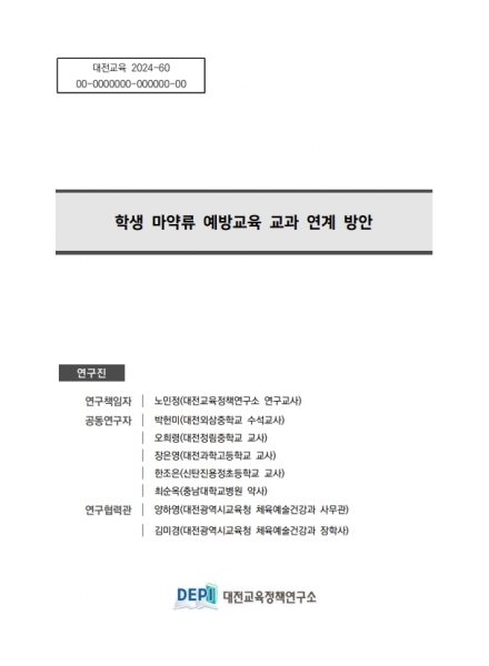 이 중 ‘학생 마약류 예방교육 교과 연계 방안’은 대전시교육청 체육예술건강과와 협력해 수행한 연구로 최근 사회적으로 문제시되고 있는 청소년 마약 문제에 대응하기 위한 실질적인 예방교육 방안 마련에 목적을 두었다.