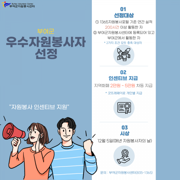 부여군, 우수자원봉사자 선정 및 인센티브 지급