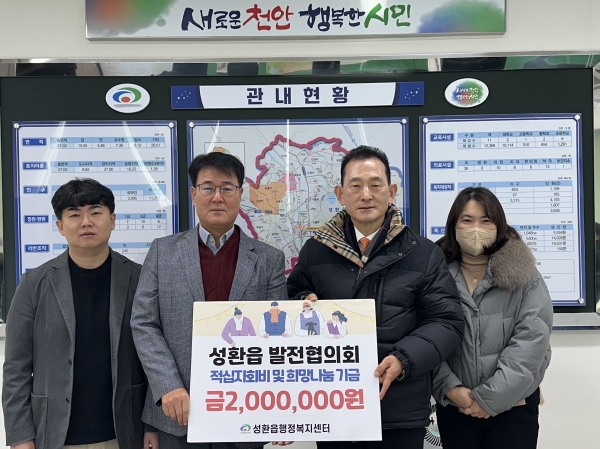 김홍경 회장은 “이번 기부는 성환읍 단체의 따뜻한 마음이 모여 이룬 값진 성과”며 “앞으로도 나눔의 손길이 필요한 곳에 도움을 줄 수 있도록 지속적으로 노력하겠다”고 밝혔다.