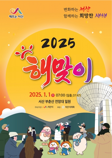 한편 관내 2025년 1월 1일 해맞이 행사는 대산읍, 부석면, 지곡면, 운산면, 해미면 등 5개 읍면동에서도 진행된다.