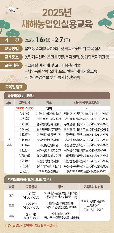 천안시농업기술센터, 2025년 새해농업인실용교육 추진