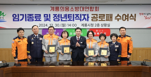 이응우 시장은 “의용소방대원 여러분의 헌신적인 노력과 봉사 덕분에 시민들의 안전이 지켜질 수 있었다”며 “자리에서 떠나시더라도 계룡시가 전국에서 가장 안전한 도시로 역사와 전통을 이어나갈 수 있도록 함께 뜻과 힘을 모아주시기를 부탁드린다”고 당부했다.