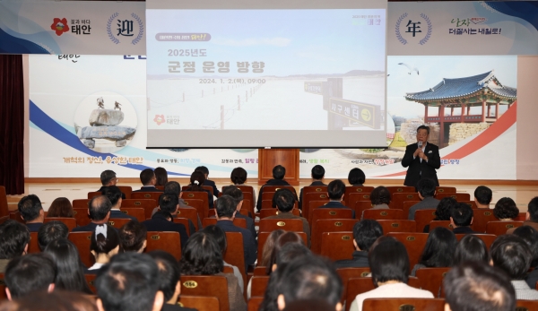 시무식에 참석한 가세로 군수는 ‘2025 태안방문의 해’를 맞아 관광객 유입을 위한 적극적인 노력을 기울이고 그동안의 성과를 바탕으로 신산업 육성과 균형발전에도 힘쓰겠다고 밝혔다.