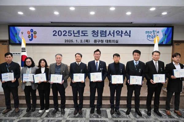 중구는 2025년에도 구청장 청렴서한문 게시 청렴골든벨 청렴협의체 운영 청렴 클린 메시지 발송 공직기강 확립을 위한 상시 감찰 등 다양한 청렴 시책을 추진해 ‘청렴 중구 만들기’에 전념한다는 방침이다.