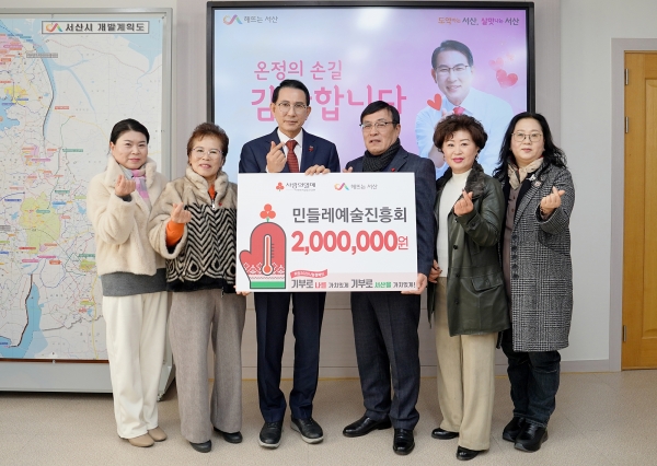시에 따르면 지난해 12월 31일 민들레예술진흥회에서 2백만원을, 서산의료원 직원 일동이 5백만원을 기탁했다.