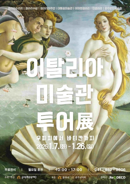 [Ytv영상스토리] 공주문화관광재단이 관내 전시공간 운영 역량을 갖춘 민간 갤러리 6곳과 협업해 ‘2025 공유전시 ‐ 이탈리아 미술관 투어 展 : 우피치에서 바티칸까지’ 레플리카 전시를 1월 7일부터 26일까지 개최한다.