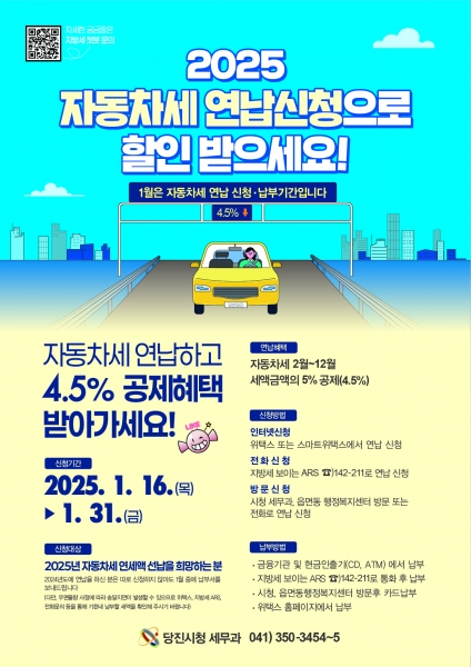 [Ytv영상스토리] 당진시는 오는 31일까지 2025년도 자동차세 연납 신청을 받는다고 14일 밝혔다.