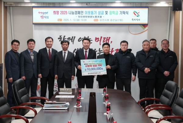 박경일 위원장은 기탁식에서 "우리 조합원들이 한마음으로 모은 정성을 지역사회에 환원할 수 있어 매우 기쁘다”며 "당진시와 함께하는 조합으로서 앞으로도 지역사회와 상생하며 나눔을 이어가겠다”고 말했다.
