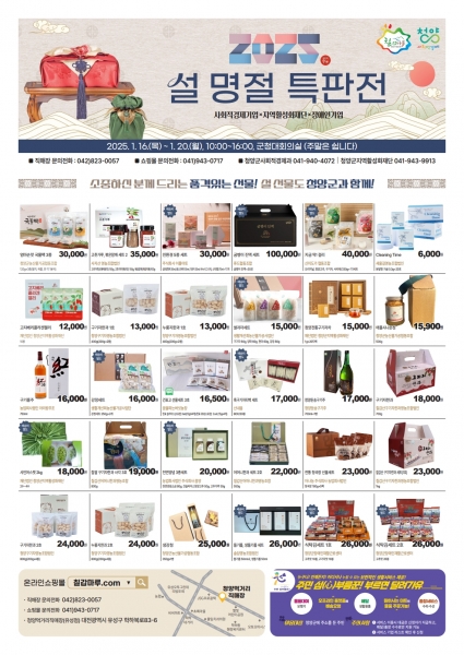 [Ytv영상스토리] 청양군은 다가오는 설 명절을 맞아 지역 농산물과 사회적경제기업 제품을 선보이는 ‘설 명절 특판전’을 청양군지역활성화재단과 함께 1월 16일부터 20일까지 사흘간 청양군청 대회의실에서 개최한다고 밝혔다.