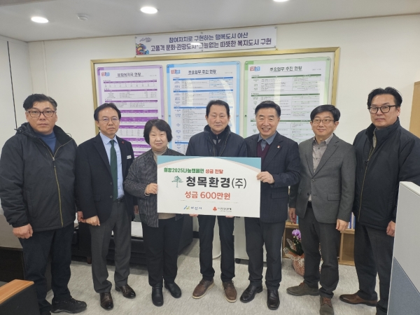 김만섭 문화복지국장은 “청목환경의 변함없는 사회공헌활동에 깊은 존경과 감사를 전하며 아산시도 지역 내 취약계층에게 큰 힘이 되도록 관심을 기울이겠다”고 답했다.