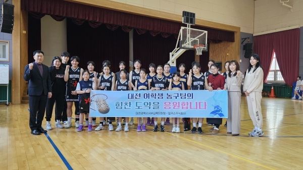 한편 대전서부교육지원청과 업무협약을 통해 학교운동부를 지속적으로 지원하고 있는 헐커스주식회사는 최근 상승세를 타고 있는 여학생 농구팀의 힘찬 도약을 기원하며 스포츠 컨디셔닝용품 등을 학생들에게 전달하고 격려했다.