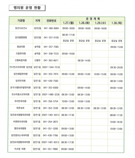 당진시, 설 연휴 문 여는 병원·약국 확인하세요