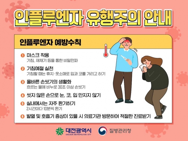최근 인플루엔자가 전국적으로 유행하는 가운데 대전시는 동계 유행 감염병 집단발생을 예방·관리하기 위해 1월 25일부터 2월 2일까지 시 및 자치구에 설 연휴 24시간 비상방역 상황실을 운영하기로 했다.