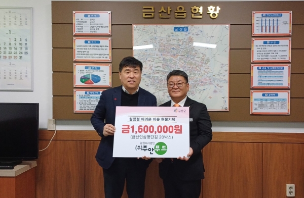 이날 정철 주안푸드 대표는 금산읍행정복지센터를 방문해 160만원 상당 금산인삼명란김을 기탁했다.