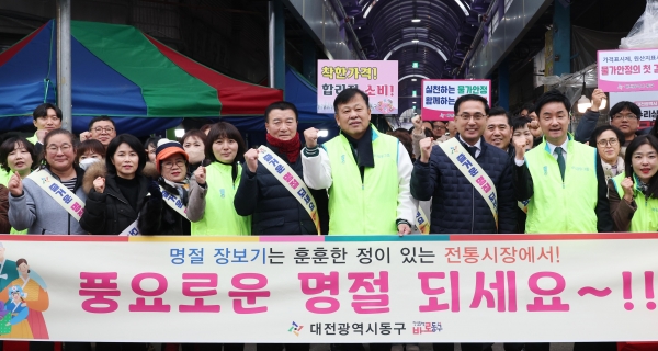 [Ytv영상스토리] 대전 동구는 지난 22일 다가오는 설 명절을 맞아 중앙시장, 역전시장, 용운시장, 신도꼼지락시장 등 관내 전통시장 4곳에서 지역주민, 자생단체 회원, 동구청 직원 등 약 300여명이 참여한 가운데 전통시장 장보기 행사를 개최했다.