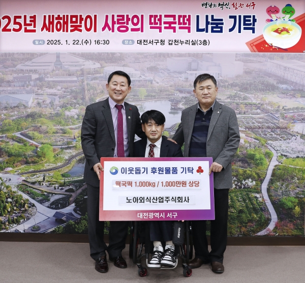 서철모 청장은 “노아외식산업의 떡국떡 나눔에 진심으로 감사드리며 을사년 새해에는 모두가 따뜻하고 행복한 시간을 보낼 수 있도록 서구도 최선을 다하겠다”고 말했다.