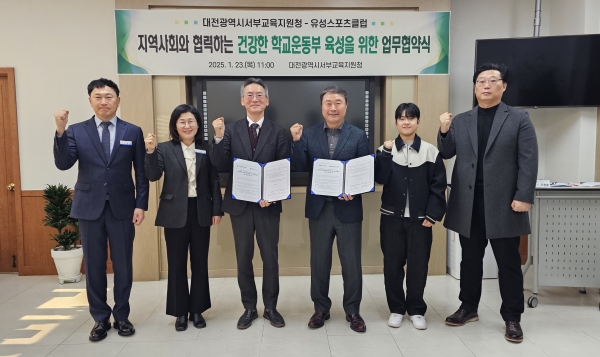 [Ytv영상스토리] 대전서부교육지원청은 23일 대전 서부교육지원청에서 유성스포츠클럽과 ‘지역사회와 협력하는 건강한 학교 운동부 육성’을 위한 업무협약을 맺었다고 밝혔다.