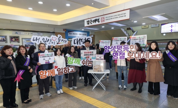 가족 친화적이고 양성평등한 명절 문화 조성을 위해 마련된 이날 행사는 최충규 대덕구청장을 비롯해 대덕구 직원들이 참여했으며 ‘양성 평등한 명절 되세요’, ‘성평등한 단어와 호칭으로 더 성평등한 명절 만들기’ 등의 문구가 적힌 폼보드를 들고 캠페인을 진행했다.