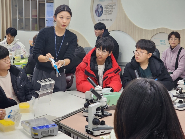 이날 교육에서는 ‘DNA 전기영동’을 주제로 학생들이 직접 마이크로 피펫을 활용해 DNA 시료를 주입해 보고 전기영동을 통해 DNA를 크기별로 관찰하는 체험이 이뤄졌으며 학생들은 이외 다양한 체험을 통해 생명공학 분야를 심도 있게 이해할 수 있는 시간을 보냈다.