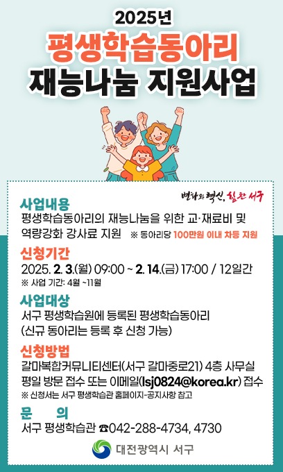 대전 서구, 2025년 평생학습동아리 재능나눔 지원사업 추진