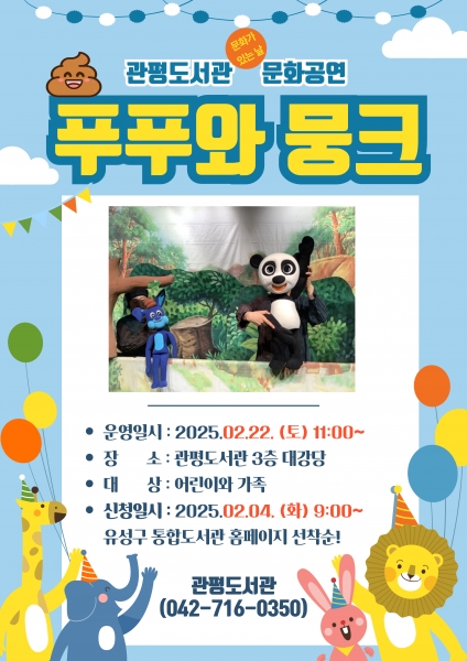 정용래 유성구청장은 “공공도서관에서도 인형극과 매직쇼, 마술쇼 등 다채롭고 재미있는 공연을 볼 수 있도록 준비했다”며 “구민들이 도서관에서 책도 읽고 문화 공연까지 즐길 수 있는 시간이 되기를 바란다”고 말했다.