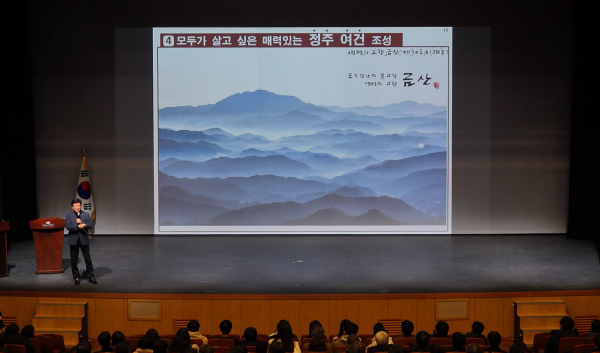 박 군수는 양수발전소 유치, 전화위복의 수해복구, 세계적 자랑거리 아토피자연치유마을 추진 등에 관해 설명했으며 정주여건, 교육, 인삼, 깻잎, 경제, 문화관광체육, 산림, 보건 복지, 충남-대전 행정통합 등 주요 정책에 관한 직원들의 관심을 당부했다.