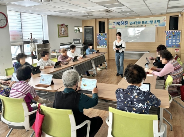 ‘기억해유’ 인지강화교실은 화·금요일 매주 2회 2시간씩 운영되며 작업치료사와 전문강사가 다양한 분야의 인지훈련 프로그램을 운영하고 치매 예방과 관련된 정보를 제공한다.