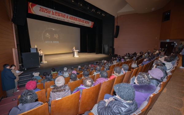 공주시니어클럽을 포함한 6개 수행기관이 참여 어르신들을 지원할 예정으로 지난 5일 금강노인복지센터가 어르신 540여명과 함께 공주문예회관에서 새해 첫 노인일자리 사업 발대식을 개최했다.