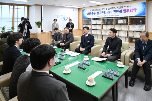 [Ytv영상스토리] 대전 중구는 지난 5일 중구 한의사회 및 전한련과‘주민 건강증진 및 한의학도 육성을 위한 업무협약’을 체결했다고 밝혔다.
