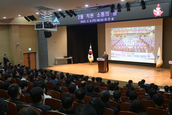 최민호 시장은 6일 시청 여민실에서 직원 300여명이 참석한 가운데 열린 2월 직원 소통의 날 행사에서 올해 극심한 정치적 혼란이 예상된다며 공직자들이 흔들림 없이 중심을 잡아줄 것을 당부했다.