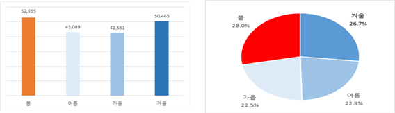 계절별 화재발생 비율: 봄’겨울’ 가을’여름 이에 소방청은 다가오는 봄철을 앞두고 시도별 여건과 특성을 고려한 봄철 화재안전대책을 선제적으로 점검하고 각 시도의 우수 정책 및 사례 공유를 통해 대책의 실효성을 높이기 위해 연찬회를 마련했다.