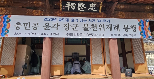 이날 초헌관은 공주향교 오병일 전교, 아헌관은 권석중 의당면장, 종헌관은 함안윤씨 윤강림 대종회장이 봉행했으며 함안윤씨 충민공파 종중과 의당면 주민 등 50여명이 참여해 충민공 윤각 장군을 추모했다.