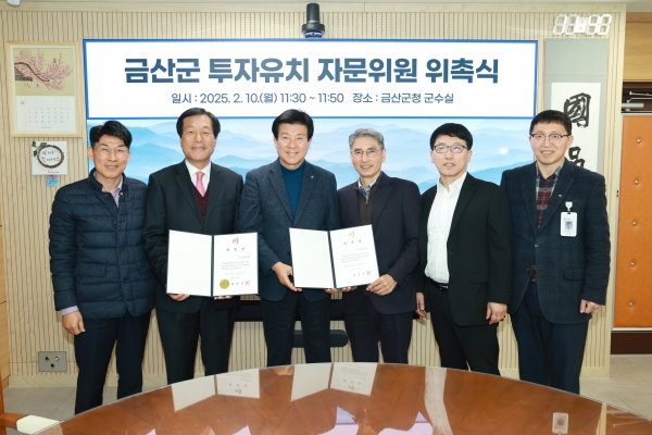 박범인 금산군수는 “지난해 이석영 교수님에 이어 이번에 허재권 고문, 임승만 고문, 조정희 과장님이 금산군 투자유치 자문위원으로 위촉됐다”며 “지역 특성에 맞는 투자유치 활동 및 산업단지 조성에 큰 힘이 될 것으로 기대된다”고 말했다.