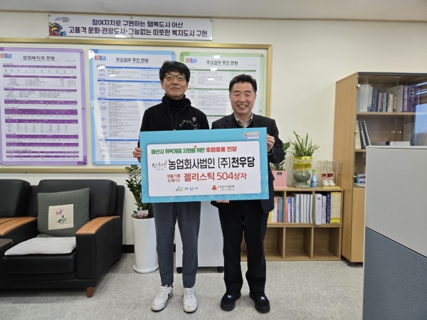 김만섭 문화복지국장은 “지난해에 이어 이번에도 진심 어린 애정으로 아산시 취약계층을 위해 후원물품을 마련해주신 송낙신 대표와 ㈜천우당에 감사하다”며 “시도 관내 기업과의 협력을 확대해 지역문제 해결에 최선을 다하겠다”고 말했다.