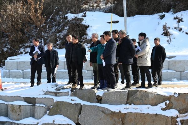 11일 박 군수는 이강복 임천면 이장단 회장을 비롯해 가신리와 점리 등 해당마을 이장과 함께 수해복구가 필요한 공공시설 중에서 피해 규모가 큰 7개소를 방문해 직접 현장을 점검했다.