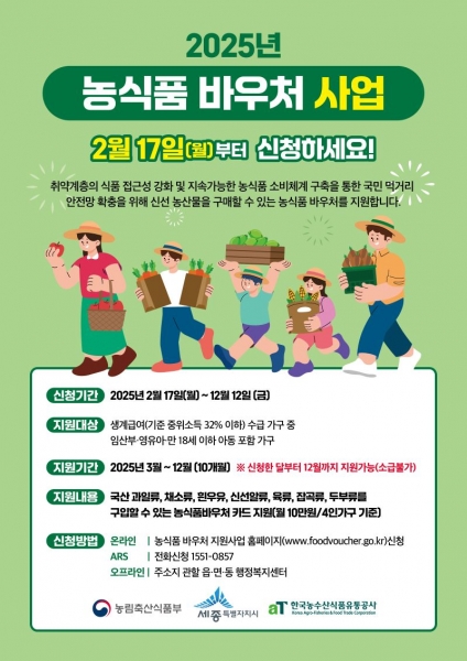 농식품 바우처는 신청자를 대상으로 검증 및 카드 발급 등 절차를 거쳐 오는 3월부터 지급된다.