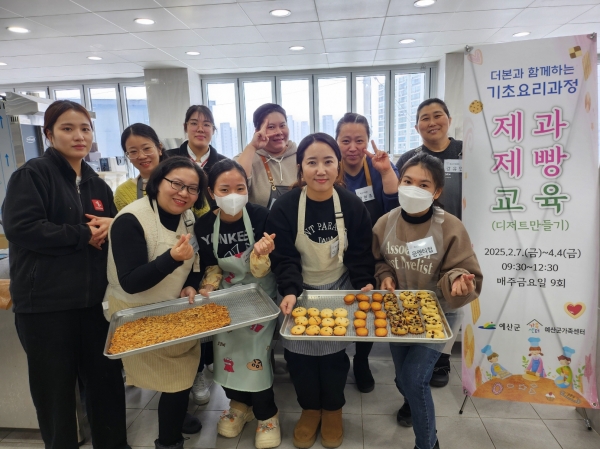 [Ytv영상스토리] 예산군가족센터는 ‘더본외식산업개발원과 함께 하는 기초 요리과정’의 일환으로 제과제빵 디저트만들기교육을 운영한다.