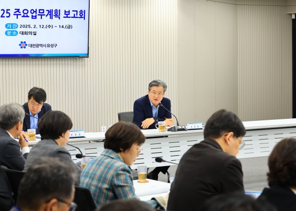 유성구는 지난 12일부터 14일까지 3일간 실·국·소·원 34개 부서장이 참석한 가운데 올해 주요 사업의 구체적인 방향을 정하고 실행력을 강화하기 위한 ‘2025 주요업무계획 보고회’를 가졌다.