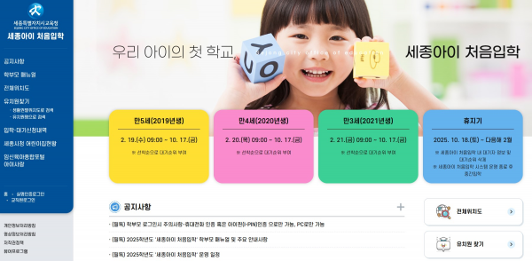 ‘세종아이 처음입학’ 시스템 운영 종료(2025. 10. 17.) 후 대기자 정보 및 대기 순위는 삭제 처리된다.