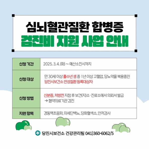 당진시, 심뇌혈관질환 합병증 검진비 지원 사업 실시